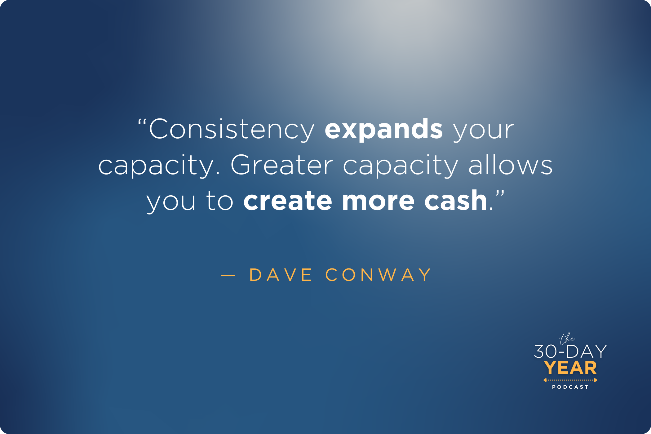 In Episode 48 of the 30-Day Year Podcast, Dave and Jacq Conway explore what amazing things can happen when you repeat the same essential actions long enough for them to become automatic and turn into a habit. They break down a simple progression: Consistency builds and expands your capacity. Increased capacity produces more cash flow.